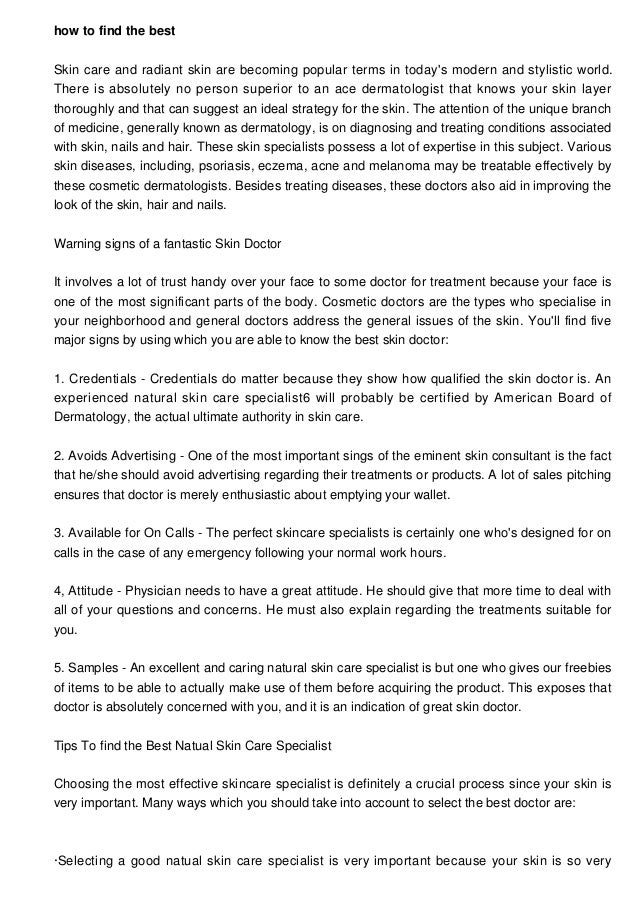 Start with a referral list of dermatologists from your primary care doctor. A dermatologist is the doctor to see if you have any queries or concerns about your skin. Find a dermatologist is produced by the american academy of dermatology (aad) as references of professional information on individual dermatologists. The dermatologist may have had extra schooling in this area, or simply has a lot of experience treating patients with this problem. Find a dermatologist is a directory of dermatologists, dermatology nurse practitioners and dermatology physician assistants, and listing of their expert opinions on medical and cosmetic dermatology